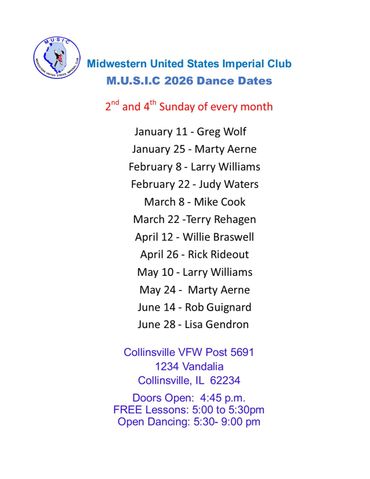 If you would like to be added to our email list to get monthly reminders about our dances email us at: